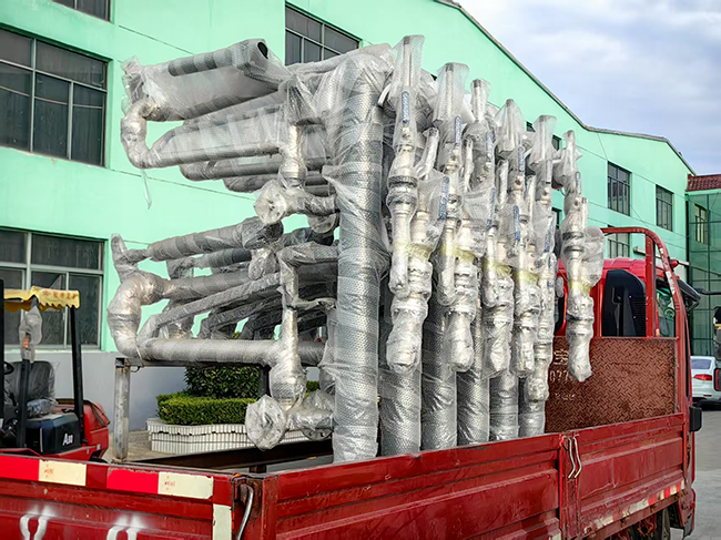 山東青島客戶定制采購(gòu)的一批裝車(chē)鶴管已裝車(chē)發(fā)往使用現(xiàn)場(chǎng)
